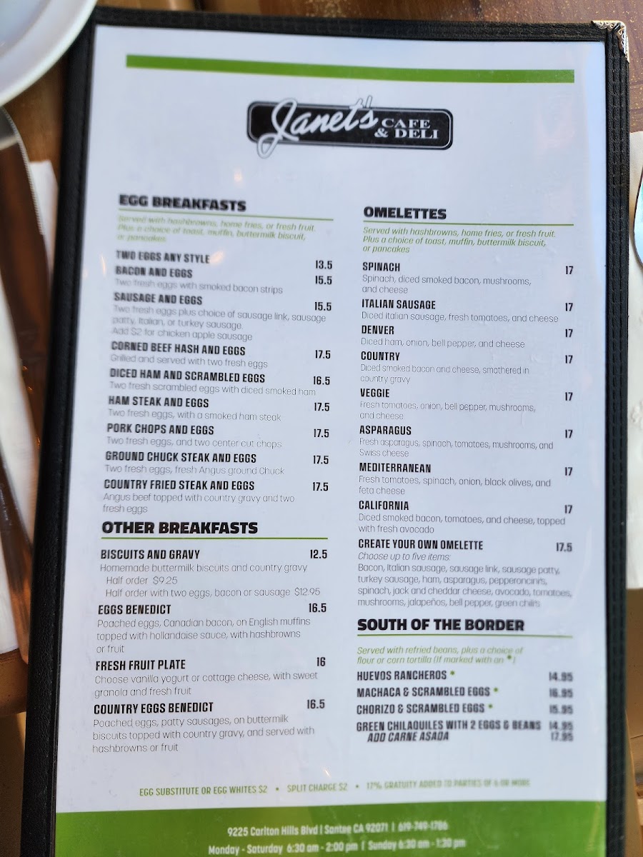 Janet's Cafe and Deli Menu